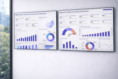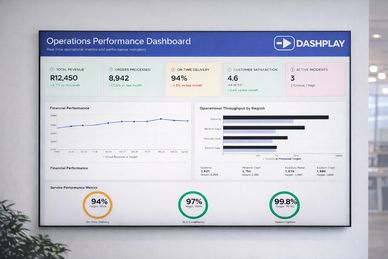 Display live business performance on large screens in offices and boardrooms. Dashplay integrates with BI platforms to show real-time KPIs, financial metrics and operational performance so leadership teams always see the latest information.